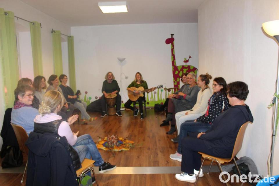 Zwölf Frauen verbrachten beim Chant-Abend mit Musik- und Bewegungspädagogin Andrea Kick einen besinnlichen Abend im Familien- und Bürgerzentrum Mittendrin. Alle freuten sich darauf, nach drei Jahren coronabedingter Pause mit ihr endlich wieder Chanten, Kraftlieder und Mantren singen zu können. Dabei konnten sie spüren, wie gut es ihnen tut, den Atem fließen zu lassen, ihn mit Tönen zu bereichern und intensive, kurze Texte wirken zu lassen. Die Kursteilnehmerinnen konnten zur Ruhe kommen, zu sich selber finden und Herz und Sinne öffnen. Sehr bald bekamen sie einen Eindruck von der heilsamen Wirkung des Singens. Dabei waren keine Vorkenntnisse notwendig. Es ging nicht um die Richtigkeit der Töne wie bei einer Chorprobe. Es gab keinen Leistungsdruck. Vielmehr konnten die Teilnehmerinnen einfach ihre Stimme zum Klingen bringen, ohne den Anspruch, eine Aufführung anzustreben. Zusammen mit zum Text passenden Bewegungen und Gebärden ergab sich eine Form intensiven, meditativen Singens. Ulrike Günther unterstützte Andrea Kick bei der Liedbegleitung mit Gitarre und Trommel.