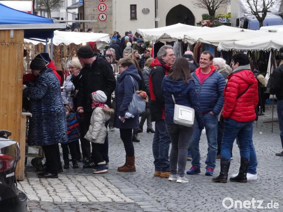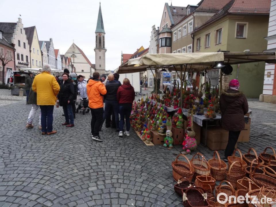 Der Wunsch der Fieranten, KEM-Fachgeschäfte und -märkte sowie der Besucher für gutes Wetter zum ersten Markttag 2020 ging einigermaßen in Erfüllung. Die Frühlingssonne konnte sich zwar nicht gegen die dichte Wolkendecke durchsetzen, aber es war trocken und bei acht Grad und mit Winterjacke gut auszuhalten. Entsprechend groß waren Resonanz und die Zahl der Stände. Rund 25 Fieranten säumten beidseitig den oberen Stadtplatz und boten unter anderem Bekleidung, Obst und Gemüse, Haushaltsbedarf, Ein-Euro-Waren sowie Spielsachen feil. Auch frische Lebensmittel fanden in den Imbiss-, Wurst-, Obst- und Backwaren- sowie Räucherständen ihre Abnehmer.