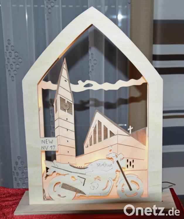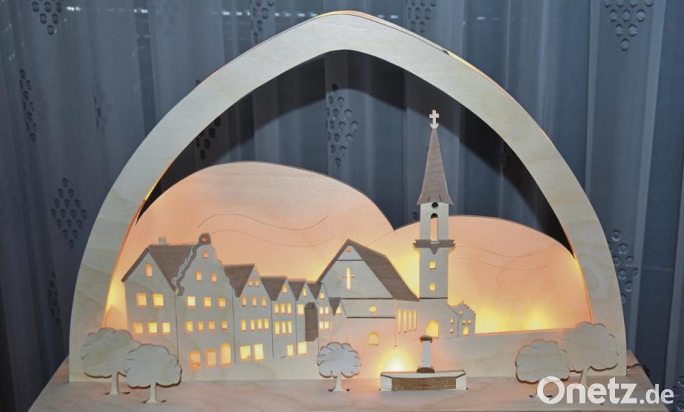 Seit nun fast zwölf Jahren fertigt der Kemnather Schwibbögen. Begonnen hat er mit einer günstigen Säge, die er einst beim Baumarkt für 40 Euro gekauft hat. Sein erstes Stück zeigt die Kemnather Altstadt mit Kirche. Danach hat er aufgerüstet und seinen Hobby-Raum mit einem leistungsstarken Gerät ausgestattet.