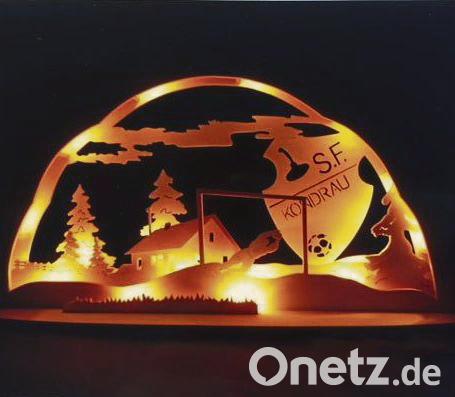 Unterstützt wird er von der ganzen Familie: Auch seine Frau und seine Tochter greifen ihm unter die Arme. Sie übertragen die Motive auf die Sperrholzplatten, die sie von Fotos abzeichnen, der Familienvater kümmert sich um die Sägearbeiten. "Nur der Papa bekommt das mit dem Sägen so gut hin", erzählt seine Tochter. Auch der Nachwuchs ist gesichert, denn sein achtjähriger Enkel wünscht sich zum Geburtstag eine Säge, um seinem Opa zukünftig helfen zu können. Wie viele Schwibbögen der Familienvater bisher hergestellt hat, ist für ihn gar nicht mehr zählbar.