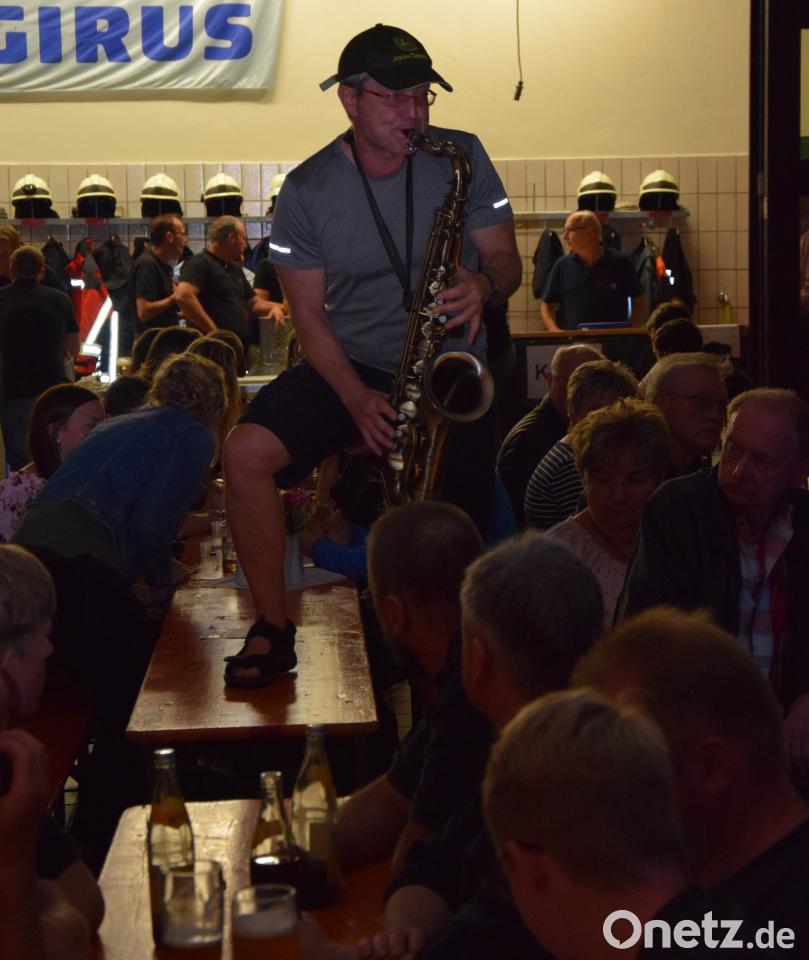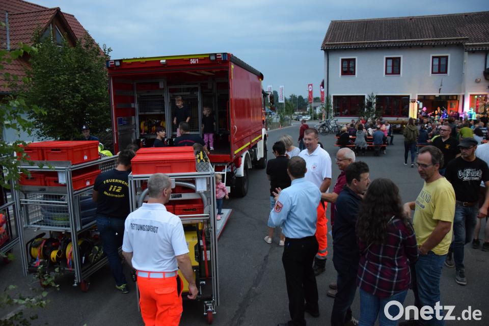Die vielen Besucher, die bei freiem Eintritt mit den Feuerwehrlern feierten, brachen auch bei eintretendem Regenschauer gegen halb zehn Uhr am Abend das Feiern nicht ab. Diese zog es nämlich dann in die geschützte Fahrzeughalle, die schließlich brechend gefüllt war.