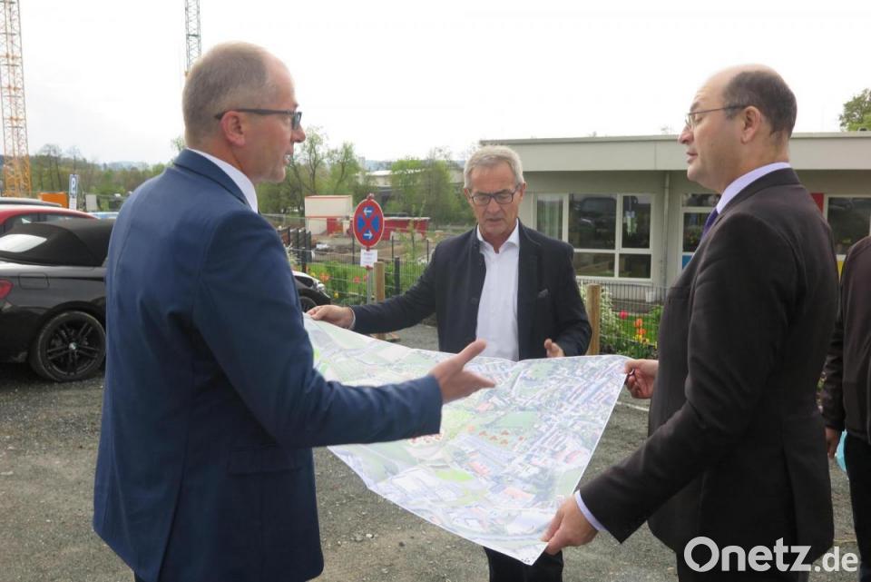 "Was ihr hier in Kemnath macht, ist wirklich sensationell", sagte Finanz- und Heimatminister Albert Füracker (MdL) bei seinem Kurzbesuch. Im Rathaus führte er Gespräche auf Verwaltungsebene mit Bürgermeister Roman Schäffler, dem Geschäftsstellenleiter Reinhard Herr und den VG-Amtsleitern. Schäffler informierte ihn über aktuelle Projekte der Stadt Kemnath. Dabei konnte sich der Minister selbst davon überzeugen, dass Kemnath eines der Aufbauzentren der nördlichen Oberpfalz ist. In der Berndorfer Straße zeigten ihm Schäffler und sein Vorgänger Werner Nickl anhand einer Karte über den Neubau der Realschule am Tor zur Oberpfalz und das neue Baugebiet "Kreuzwiese" mit 14 Bauparzellen inklusive Erschließungsanlagen.