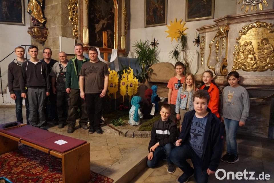 Heuer liegen zudem eine selbstgebaute Lanze, Nägel und der Münzbeutel des Judas vor dem Ostergarten. Auch Stadtpfarrer Konrad Amschl sah sich das fertige Werk an und lobte die "Gartenbauer" für ihr Engagement.