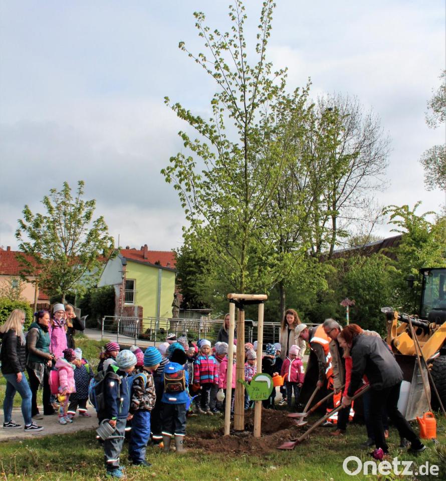 Vorbereitet von Mitarbeitern des Städtischen Bauhofs um Stadtgärtner Florian Frank, griffen Bürgermeister Werner Nickl, Familienbeauftragte Jutta Deiml sowie Stadtmarketing-Verantwortliche Susanne Schiller zur Schaufel, um den Stamm fest in der Erde zu verankern. Zum "Angießen" waren anschließend zwei Gruppen des Kemnather Kindergartens gekommen, um mit den mitgebrachten Gießkannen für den nötigen Wasserzufluss zu sorgen.