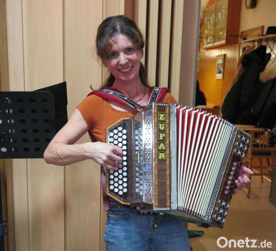 Zwar kann Uli Affolter aus Grötschenreuth nicht jedes Mal zum Musikantenstammtisch kommen. Aber wenn sie da ist, trägt sie gerne auf ihrer Steirischen Harmonika ihre Lieblingsstücke vor. In ihrer Familie spielt die Musik schon eine Rolle. Ehemann Daniel und Sohn Michael sind Trompeter bei der Stadtkapelle Kemnath. „Als mein Sohn Daniel keine Lust mehr hatte, Steirische Harmonika zu lernen, habe ich damit angefangen“, erzählte sie. Seit über sieben Jahren nimmt sie bei Alleinunterhalter Markus Brand in Löschwitz Unterricht. Für „Ich möchte so gern nach Oberkrain“, „In der Hinterstubn“, „Zillertaler Notenlandler“ und „Hardtwald-Boarischer“ bekam die „Uli“ viel Beifall.