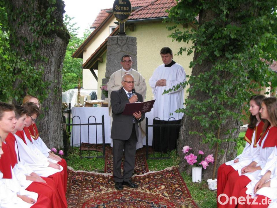 Beim Anwesen Miethig am Ortseingang warteten schon viele Menschen auf die Ankunft der Prozession. Dort zelebrierte der Stadtpfarrer die Feldmesse, Steinkohl trug die Lesung und die Fürbitten vor.