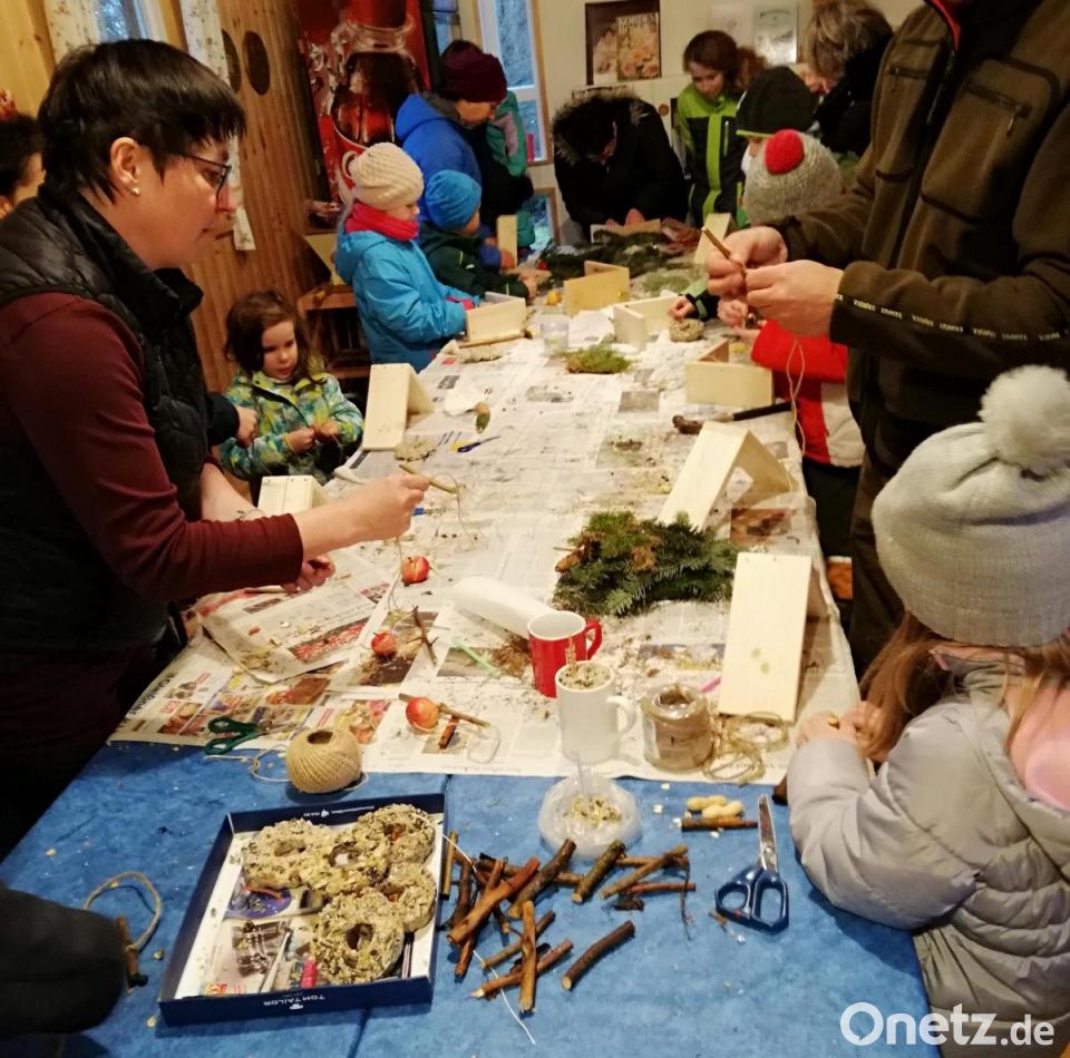 Für Futterringe und -tassen wurde Pflanzenfett erwärmt. In das flüssige Fett rührten die jungen Gartler Sonnenblumenkerne, Weizenkörner, Weinbeeren, Erdnusskerne sowie Haferlocken. Die Masse gossen sie in Formen und ließen sie abkühlen. Für Futtergirlanden befestigten sie an einer dicken Schnur Zweige, Erdnüsse, Äpfel, Fichtenzapfen und die Futterringe. Diese konnten dann mit nach Hause genommen werden.