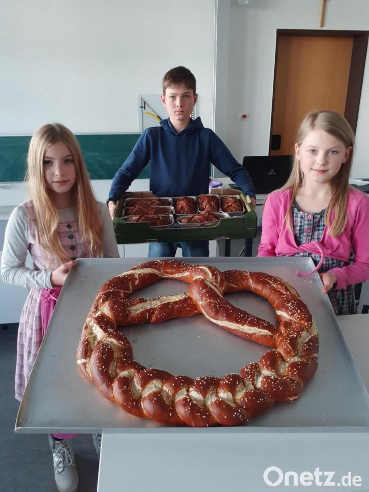 Außerdem richtete sie Putenwiener, Obatz'n und Käse her und servierte alles zusammen mit Semmeln und Brezen. Eine eigens für diese Aktion gebackene Riesenbrezn der Bäckerei Schraml aus Erbendorf fiel dabei nicht nur imposant ins Auge, sondern verdeutlichte auch, dass die Schulgemeinschaft der Ganztagsklassen an der Realschule am Tor zur Oberpfalz zusammengehört.