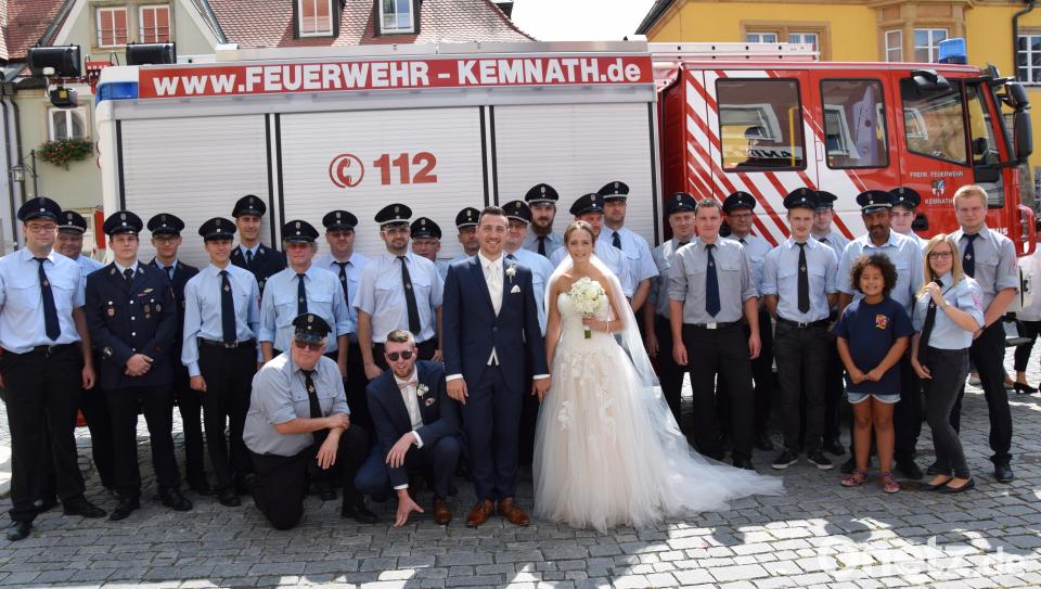 Nach dem Segen und dem Schlusslied „Weus´d a Herz hast wia a Bergwerk“ zog das frisch vermählte Paar aus der Stadtpfarrkirche aus. Vor den Toren der Kirche standen die Kameraden der Feuerwehren Kirmsees, Immenreuth und Kemnath Spalier und beglückwünschten das Paar, ebenso eine Abordnung der Landjugend Frankenpfalz.