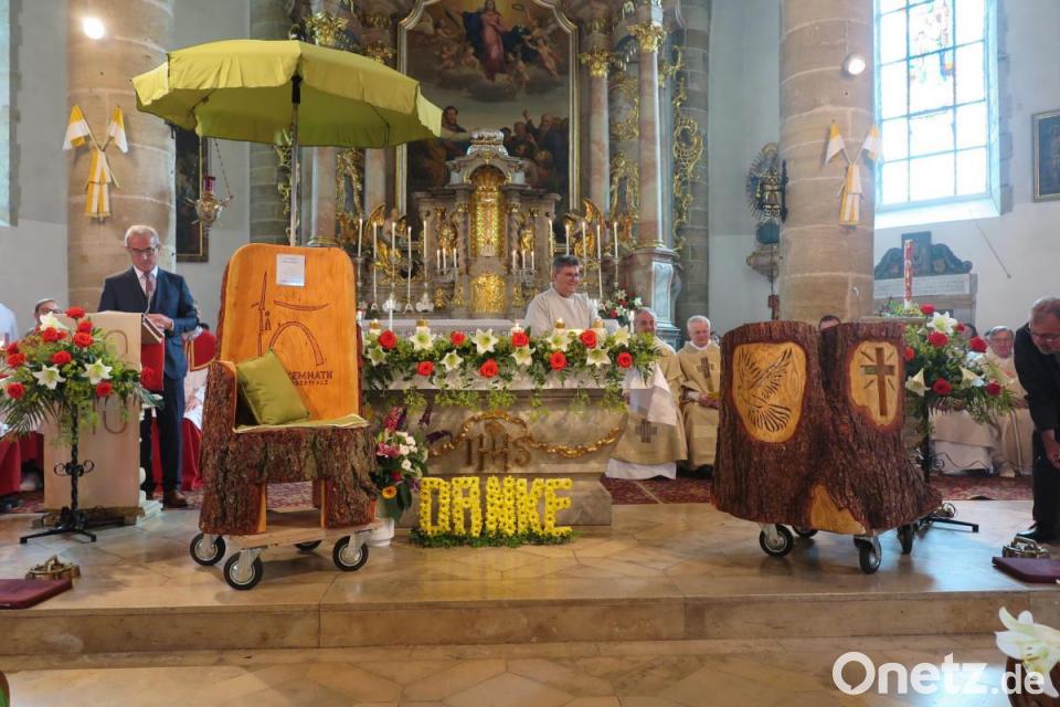 Als Seelsorger in Bärnau werde Amschl jetzt Waldbesitzer. "Ein Geschenk von Waldbesitzer (Stadt Kemnath) zu Waldbesitzer (Pfarrei Bärnau) kann eigentlich nur aus Holz sein", meinte der Bürgermeister. Dann präsentierte er das Abschiedsgeschenk der Stadt Kemnath: einen Gebetsstuhl und einen Stuhl zur Entspannung. "Beides soll Sie an die schöne Zeit in Kemnath erinnern, aber auch daran, dass Sie uns wieder einmal besuchen könnten."