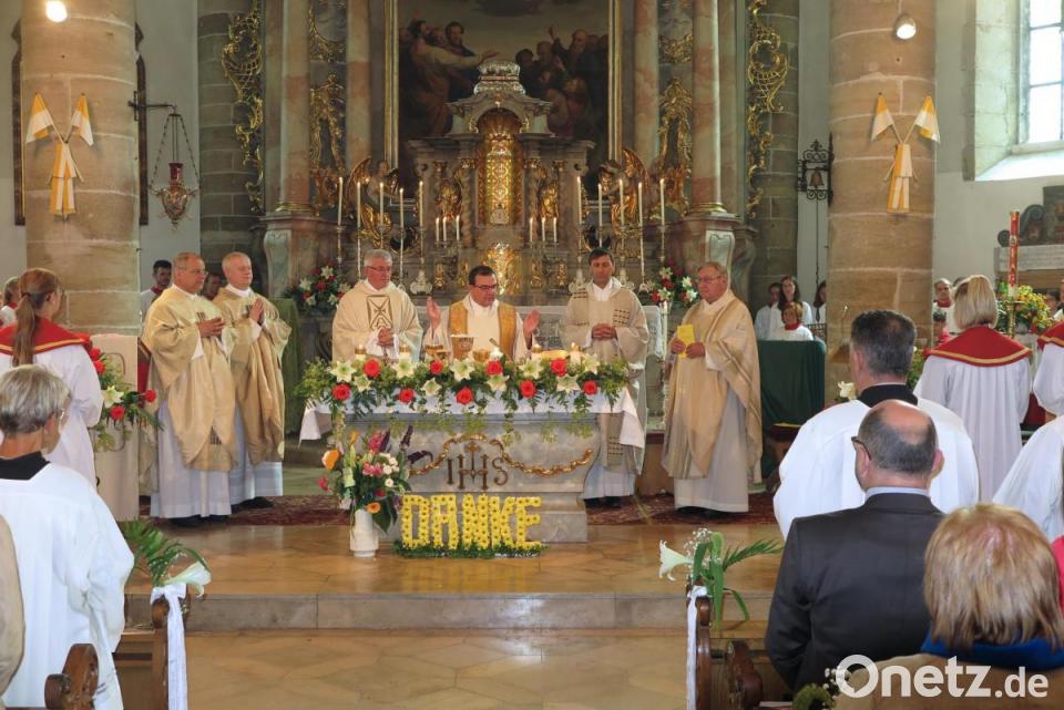 Kaum fassen konnte das Gotteshaus die vielen Gläubigen, die zum Dankgottesdienst gekommen waren. Der Stadtpfarrer, der ab September in Bärnau seelsorgerisch wirkt, freute sich über seine Mitzelebranten Militärgeneralvikar Reinhold Bartmann, Domkapitular Thomas Pinzer und Ruhestandspfarrer Alois Lehner als. Gekommen waren aber auch die polnischen Geistlichen Andreas Cypris, Direktor des theologischen und pastoralen Instituts in Rzeszow, und Kanzler Peter Stezkowski. Mit einer Wegmeditation stimmte Gemeindereferent Jochen Gößl die Gläubigen auf die Messfeier ein. "Wir gehen auf unterschiedlichen Wegen und suchen nach einem Wegweiser, nach Halt und Orientierung", lautete ein Kyrie-Ruf. "Guter Gott, eine lange Wegstrecke liegt hinter uns", betete Amschl. "Wir haben zusammen gelacht und geweint, gebetet und gehofft, gesungen und gefeiert."