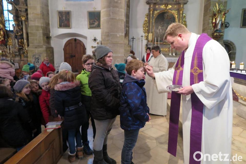 "Heute wollen wir uns einüben in die Gedanken an unseren eigenen Tod und unsere eigene Auferstehung", verkündete der Geistliche. "Herr Jesus Christus, zeige uns den Sinn des Fastens, zeige uns, was wichtig ist und zeige uns unseren Weg zu einem erfüllten Leben", lauteten drei Christusrufe, die Kinder vortrugen.