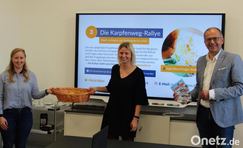 Die neu aufgelegte Karpfenweg-Rallye in Kemnath bot während der Sommerferien Spaß für die ganze Familie. An mehreren Etappen des Karpfenwegs mussten Rätsel und Fragen über Kemnath gelöst werden. Das alles wurde in einen Fragebogen eingetragen. Unter allen Teilnehmern losten jetzt Bürgermeister Roman Schäffler, Susanne Schiller vom Stadtmarketing sowie die Kemnather Jugendbeauftragte Maria Heser drei Preise aus: Über Essensgutscheine dürfen sich freuen: David Lukas (30 Euro), Nele Buchner (20 Euro) sowie Eva Wolfram (10 Euro). Die Gewinner werden benachrichtigt.