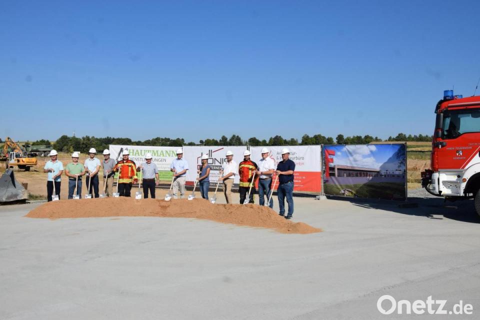 Zum Spaten griffen neben dem Bürgermeister und seinen Stellvertretern Hermann Schraml und Katharina Hage auch Bauamtsmitarbeiter Stefan Gaßler, Bauunternehmer Volker Ziegler, Architekt Matthias Stelzl, Statiker Markus Bayerl, Feuerwehrkommandant Peter Denz, Architekt Wolfgang Schultes, Feuerwehrvorstand Marco Schäffler, Geschäftsstellenleiter der Verwaltungsgemeinschaft Reinhard Herr und Bauamtsleiter Roland Sächerl.