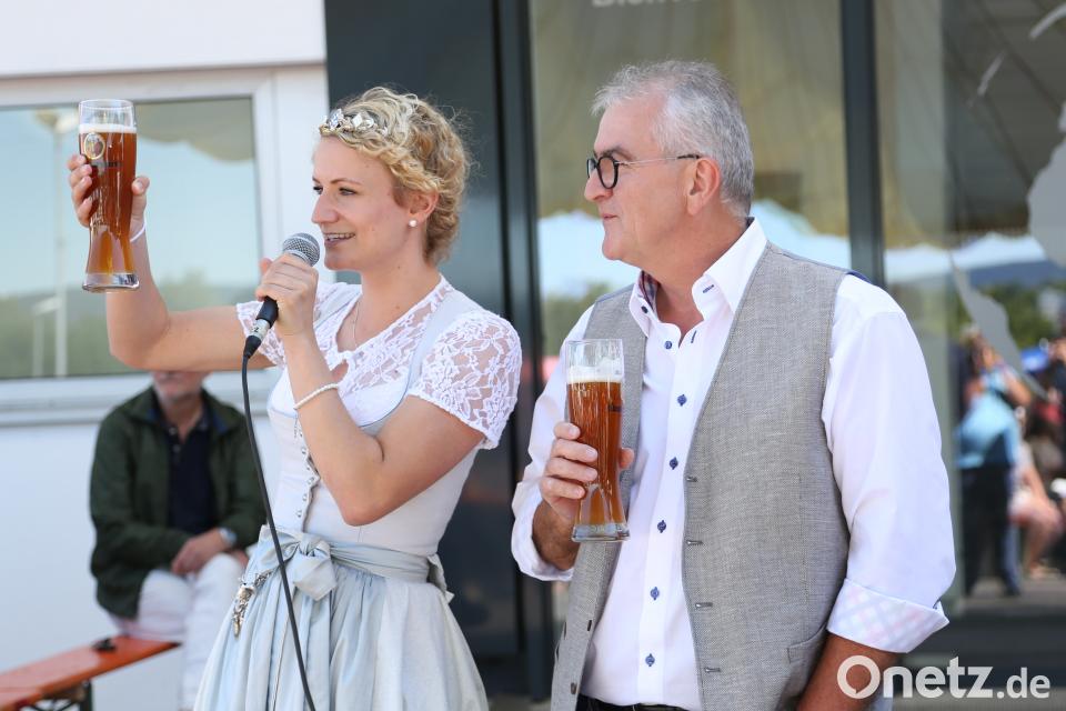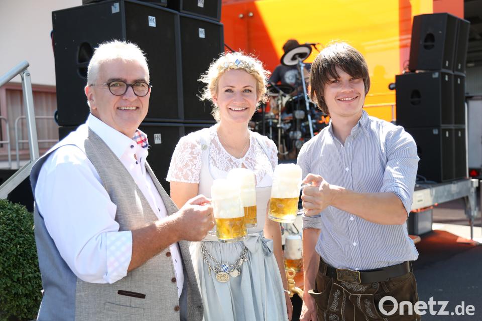Standesgemäß zapfte die 26-jährige Studentin und Hobbyläuferin symbolisch das erste Fass Bier zum Start in einen gemütlichen Nachmittag auf dem Firmengelände an. Zusammen mit Festwirt Johannes Ponnath von der örtlichen Klosterbrauerei und Alfred Koch brauchte sie nur zwei Schläge, bis das Bier in die Krüge floss.