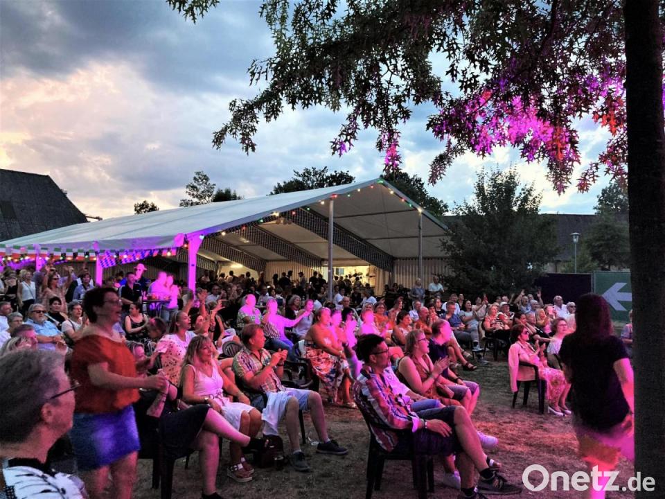 Das Areal rund um den Eisweiher zeigte wieder einmal sein Potenzial als Fest- und Feiergelände. Neben italienischer Musik war auch bestens für Gelato, Vino, Cocktails, Pasta und Pizza gesorgt. Und das Wetter passte auch, so dass Bürgermeister Roman Schäffler pünktlich um 20 Uhr über 500 Besucher begrüßen konnte. Die konnten entweder unter dem Zeltdach sitzen oder unter freiem Himmel sitzen und stehen – viele von ihnen tummelten sich dann später auf der Tanzfläche vor der Bühne.
