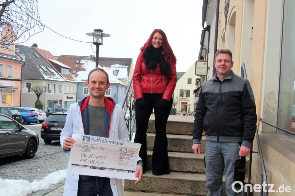 Über Spenden in Höhe von jeweils 1500 Euro durften sich Jessika Wöhrl-Neuber vom Familien- und Bürgerzentrum Mittendrin sowie Holger Pühl für die Flutopferhilfe im westlichen Teil Deutschlands freuen: Der Kemnather Apotheker Dr. Sebastian Vonhoff überreichte insgesamt 3000 Euro an beide. Die Summe ist das Ergebnis der Weihnachtsaktion der Dr. Vonhoff Apotheken (Stadt-Apotheke und Vorstadt-Apotheke) in Kemnath, denn in beiden Geschäften gab es in diesem Jahr für die Kunden keine Weihnachtsgeschenke.