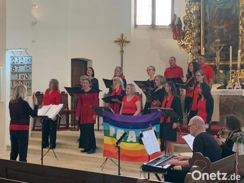 Zu den ökumenischen Friedensgebeten in Kemnath gestaltete der Gospelchor "Just for Joy" unter der Leitung von Andrea Kick ein "Singen für den Frieden". Dieses fand in der evangelischen Kirche in Wirbenz statt, dessen renovierter Kirchenraum mit seiner fantastischen Akustik einen hervorragenden Rahmen bot. Zehn Friedenslieder in deutscher und englischer Sprache, von "We shall overcome" bis zu "Where peaceful Waters flow", einem Song von Chris de Burgh, war es ein abwechslungsreiches Programm, bei dem die Besucher überwiegend mitsingen konnten. Zwischen den Liedern trugen Chormitglieder und Pfarrerin Kathrin Spies Gebete und Texte sowie Erläuterungen zu den Liedern vor. Aus gegebenem Anlass wurde an der Kirchentür für die Katastrophenhilfe der Diakonie in der Ukraine gesammelt. Es kamen 200 Euro zusammen.