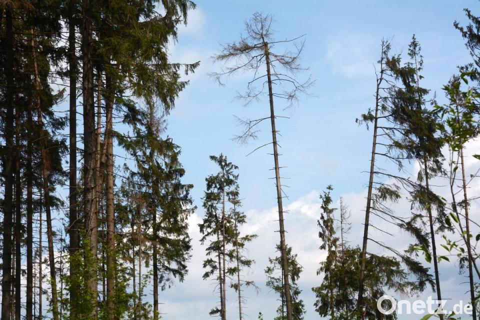 „Jede Baumart hat ihre eigene Borkenkäferart, Buchdrucker und Kupferstecher sind aber besonders gefährlich für die Fichten“, erklärt Lüder. „Der Käfer ist variabel – er geht mittlerweile auch auf vitale Bäume.“ Vorher habe sich das Insekt auf die trockenen Fichten beschränkt. „Die Käfer gehen mit den Zeiten“, ergänzt Schödel. Befallene Bäume müssten gefällt und schnell wie möglich aus dem Wald geschafft werden.