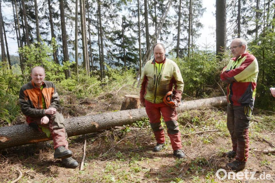 Das bestätigen Reinhard Häupl, Karl Dostler und Alfred Lautenbacher. Sie sind seit einigen Tagen in dem Waldstück, das der Stadt Erbendorf gehört, unterwegs. Die drei Landwirte fällen Bäume, die von den Käfern befallen sind. Sie arbeiten schon seit mehreren Jahrzehnten im Auftrag der Stadt in deren kommunalen Wäldern. Als private Waldbesitzer wissen sie um die Gefahr, die der Borkenkäfer mit sich bringt. Häupl zum Beispiel hat in seinem 20 Hektar großen Waldstück bereits umgedacht und Douglasien, Buchen oder Eichen gepflanzt beziehungsweise pflanzen müssen. Ihm ist der Bezug zum Wald wichtig: "Mein Vater hat sein Herzblut in den Wald gesteckt und alles gepflanzt."