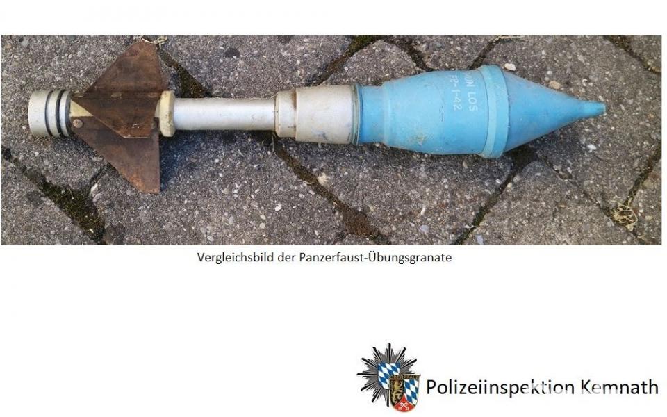 Eine 32-jährige Frau aus dem Gemeindebereich Kemnath hat beim Joggen am Mittwoch eine Panzerfaustgranate entdeckt. Allerdings erkannte sie den ungewöhnlichen Gegenstand nicht sofort. Sie nahm ihn mit nach Hause und lackierte ihn schwarz um. Erst als sie recherchierte, stellte sie fest, dass es sich dabei um eine Panzerfaustgranate handelte und verständigte die Polizeiinspektion Kemnath.