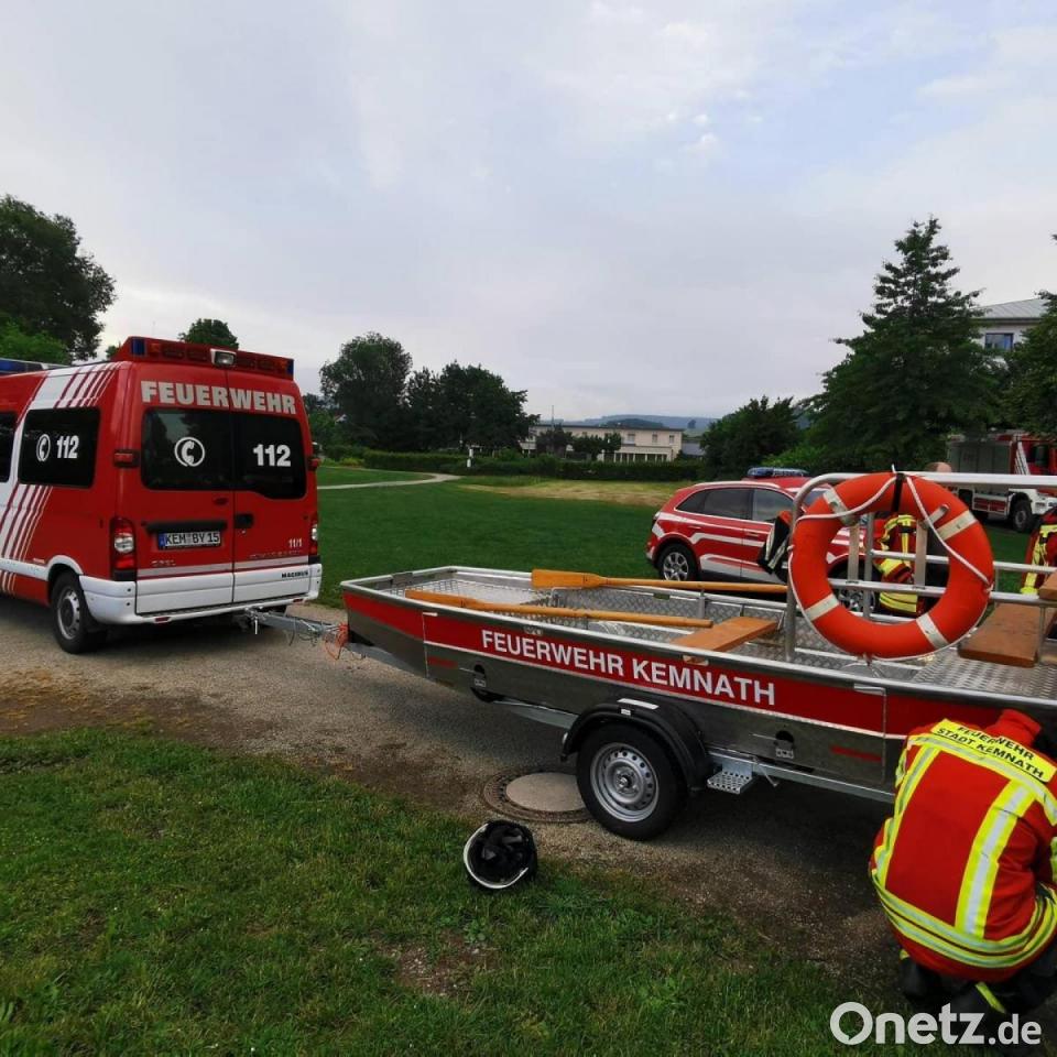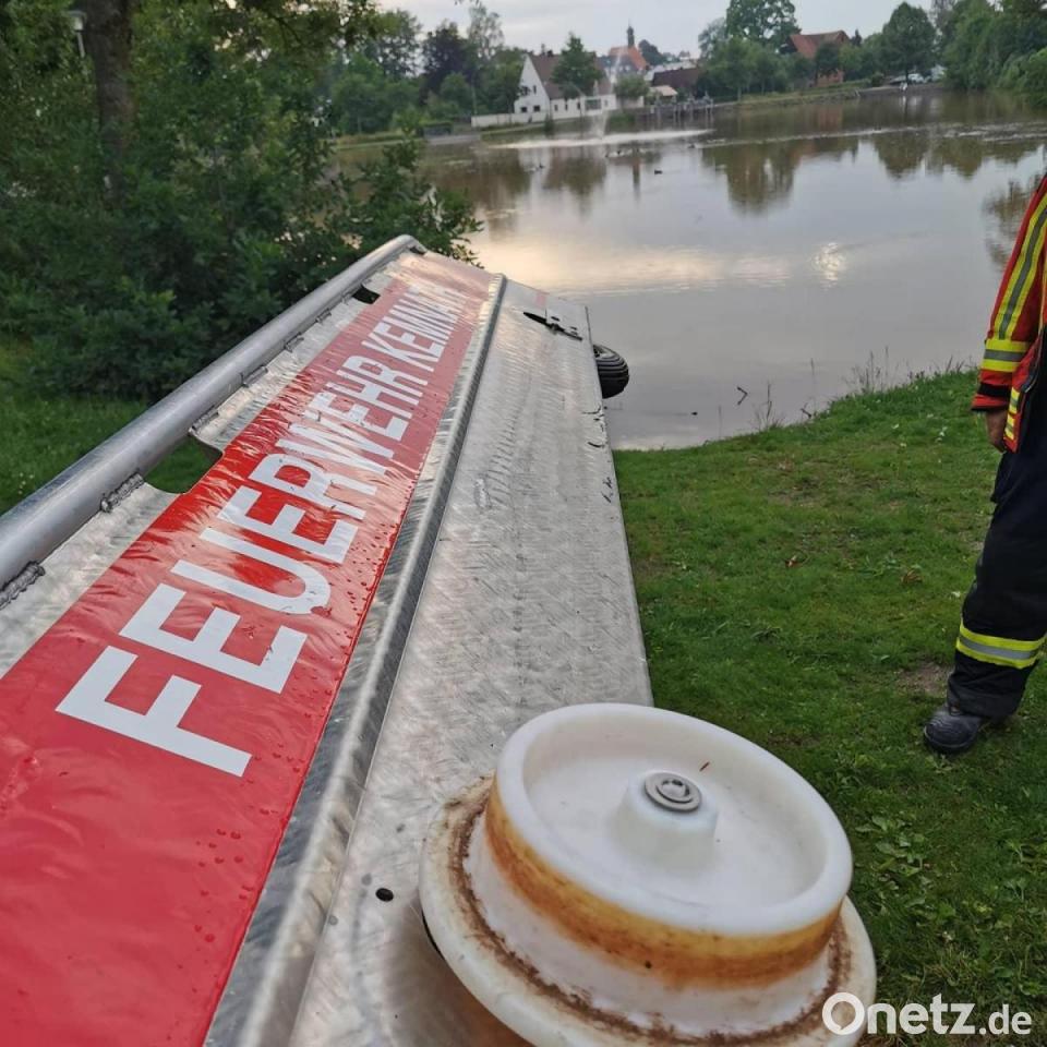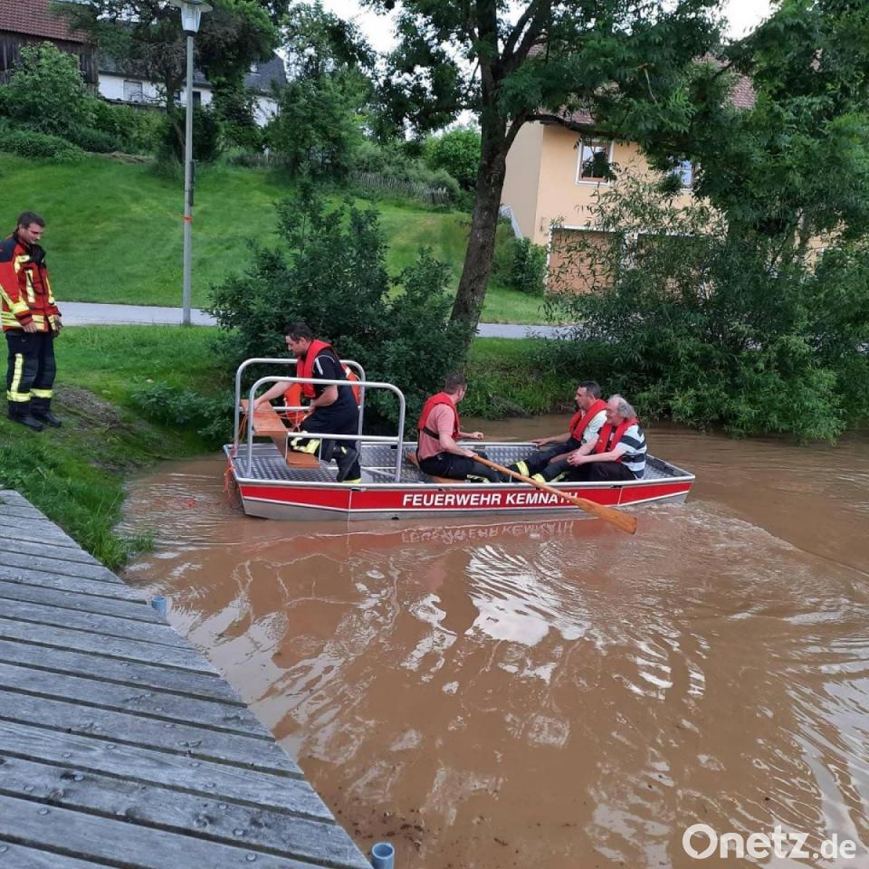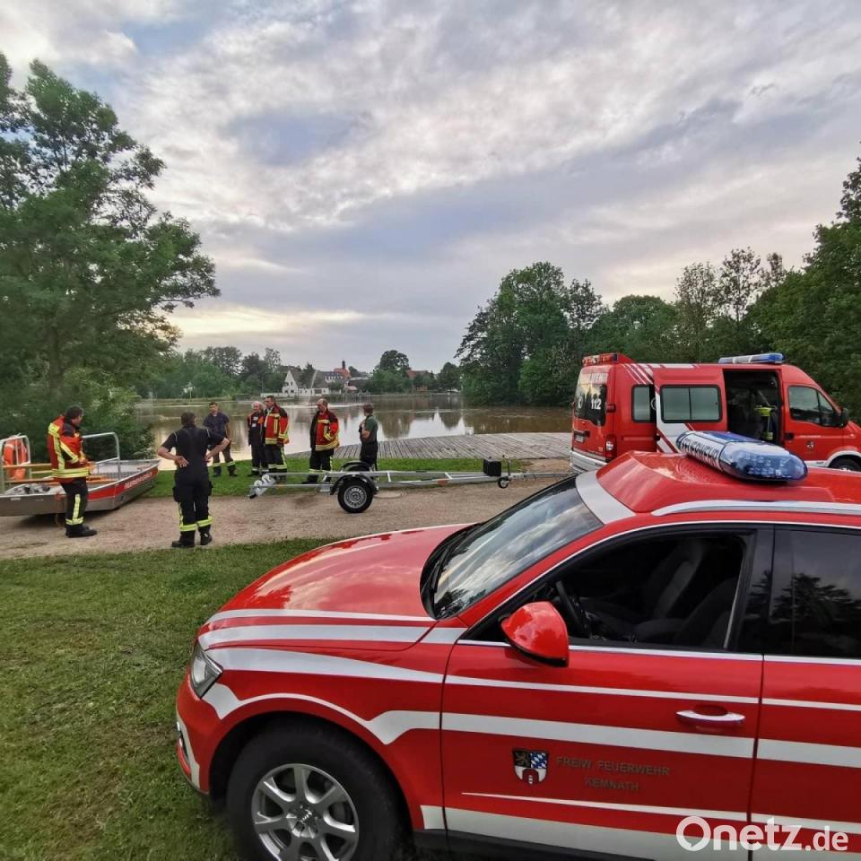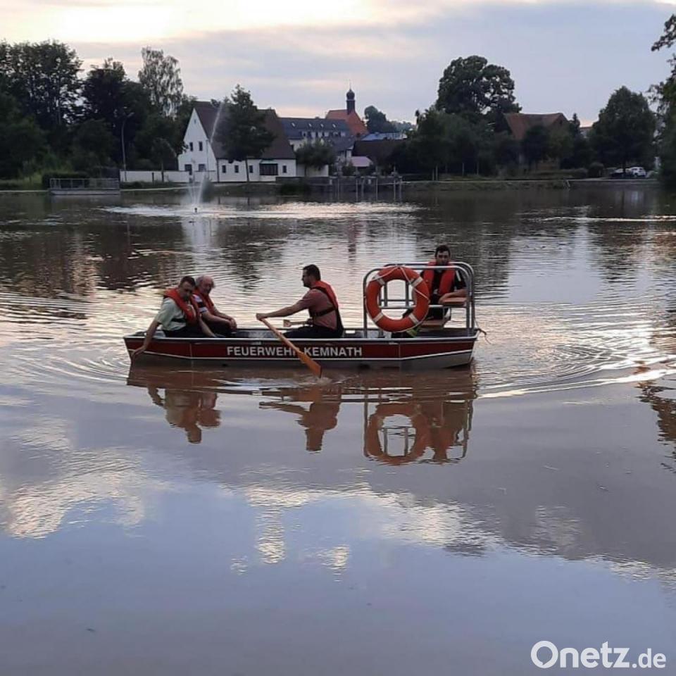 Für die Aktiven der Kemnather Feuerwehr war für Abwechslung gesorgt: Im Übungsbetrieb ging es für sie diesmal mit dem Boot zum und in den Stadtweiher - und dann an die Ruder und Spurkranzräder.
