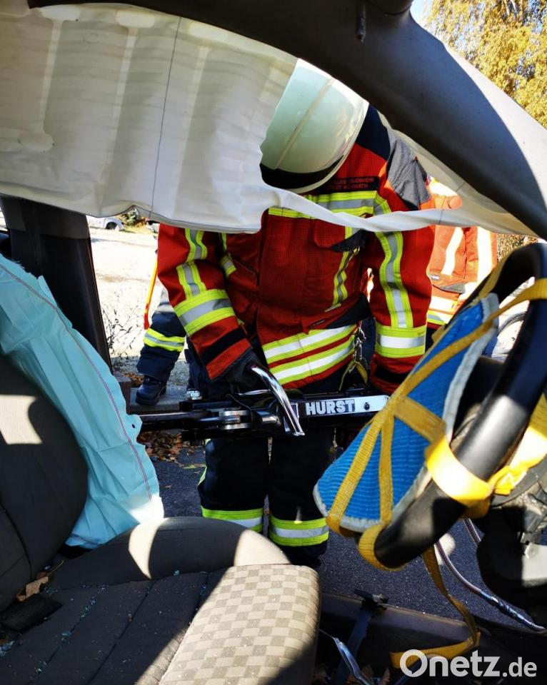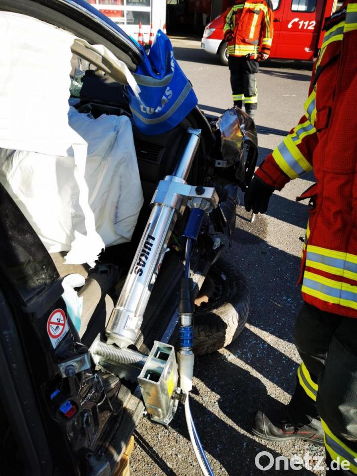 Auch die Rettungskarte, auf der etwa Karosserieversteifungen und die Einbauorte von Batterie, Gasdruckdämpfern oder Gurtstraffern des jeweiligen Fahrzeugs vermerkt sind, wurde in die Übungen mit einbezogen. Schließlich setzten die Floriansjünger die schweren Rettungsgeräte an, drückten Fahrzeugteile mit dem Spreizer beiseite und trennten mit der hydraulischen Rettungsschere größere Blechteile ab. Mit mehreren Gerätschaften machten sie sich gleichzeitig an einer Autokarosse zu schaffen, um eine große Rettungsöffnung herzustellen.