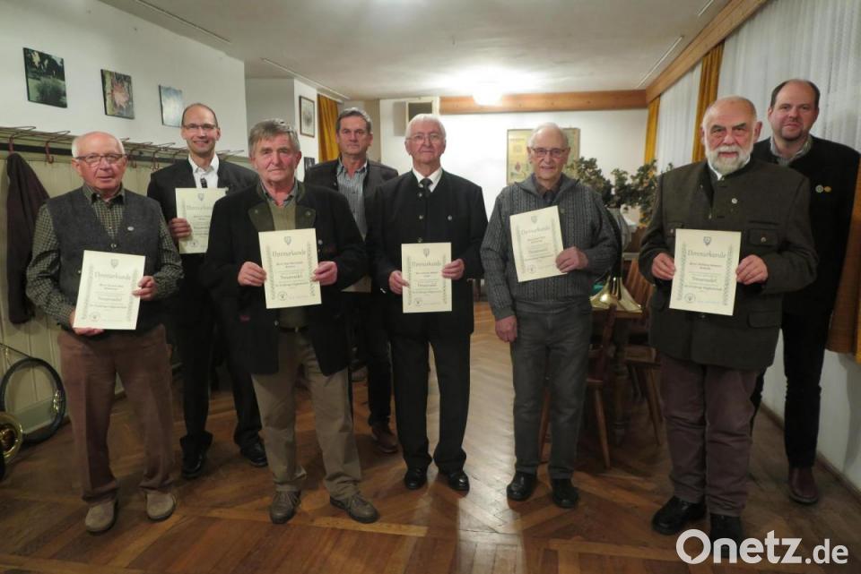 Bei den Ehrungen dankte Wolfgang Schinner zahlreichen Jagdgenossen für ihre langjährige Treue: 25 Jahre: Josef Bertelshofer, Reinhard Braun, Walter Ehlich, Gerald Hofmann, Günther Schöffel, Wolfgang Veigl junior, Thorsten Zickler und Thomas Deubzer; 40 Jahre: Ely Eibisch, Hubert Mühlhofer, Bernhard Raab und Albert Schöpf; 50 Jahre: Richard Matt, Wolfgang Schinner und Siegbert Stock; 60 Jahre: Josef Weyh.