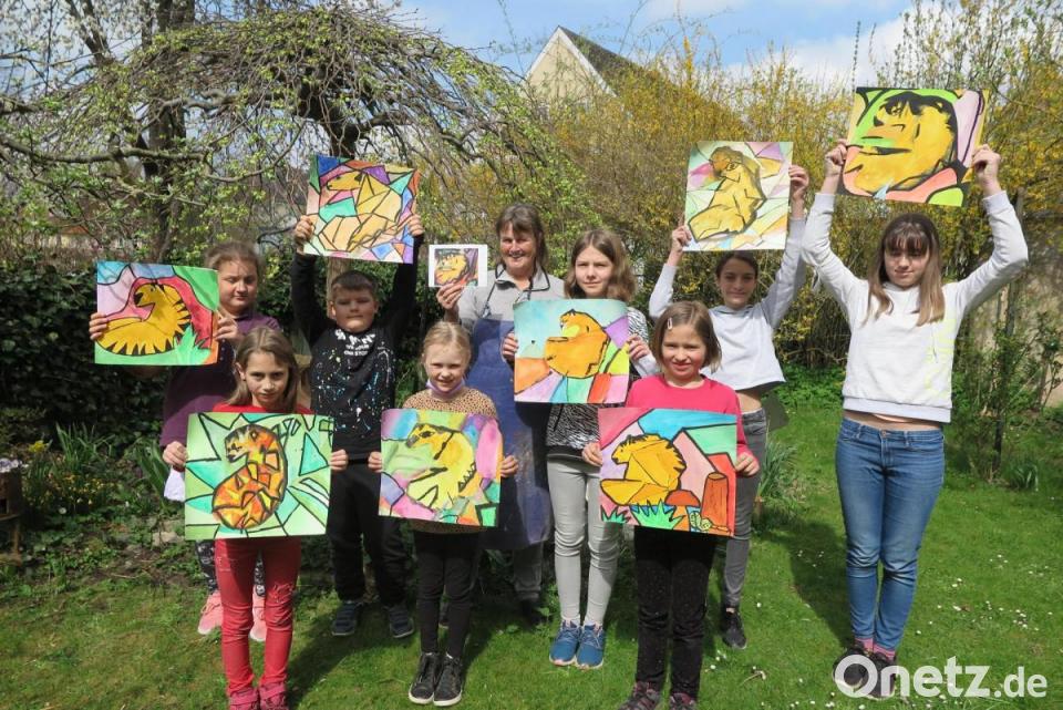 Acht Buben und Mädchen waren zur Malstunde mit Susanne Vonhoff gekommen. Eines von Marcs bekanntesten Gemälde ist der "Tiger", das eine kubistische Formsprache aufweist. Jedes Kind bekam von Vonhoff eine Vorlage. Nachdem sie mit den kleinen Malkünstlern Farbe und Formen besprochen hatte, nahmen sie Malkasten und Pinsel und legten gleich los. Gemalt wurde mit Wasserfarben auf Malkarton, "damit sich nichts wölbt". "Typisch für die Bilder im Expressionismus sind dies schwarzen Linien" erklärte Vonhoff den Kindern. Dadurch werde die Leuchtkraft der Farben gesteigert. Bei der Abschlussbesprechung sparte sie nicht mit Lob. Stolz konnten alle ihren eigenen "Tiger" mit nach Hause nehmen.