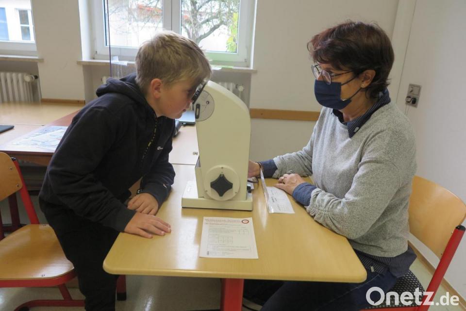 Um die Effektivität zu erhöhen, teilte er jede Klassen in zwei Gruppen auf. In den eigenständigen Veranstaltungen mit theoretischen und praktischen Unterweisungen sollte der Verkehrsunterricht der Grundschulen weitergeführt und ergänzt werden. Ruth Panzer vom Kemnather Optikergeschäft Schippl bestimmte bei jedem Fünftklässler beim Sehtest die zentrale Tagessehschärfe.