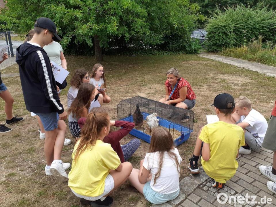In der Biologiestunde sorgte Realschullehrerin Simone Lindner für tierischen Besuch. Neben der Burenziege Linda und ihrem Nachwuchs waren verschiedene Hühnerrassen gekommen. Die Kinder sollten erkennen, dass es nicht selbstverständlich ist, Eier, Fleisch und Milch ständig zur Verfügung zu haben. Zudem erfuhren sie, dass Milch nur fließt, wenn ein Jungtier zur Welt kommt.