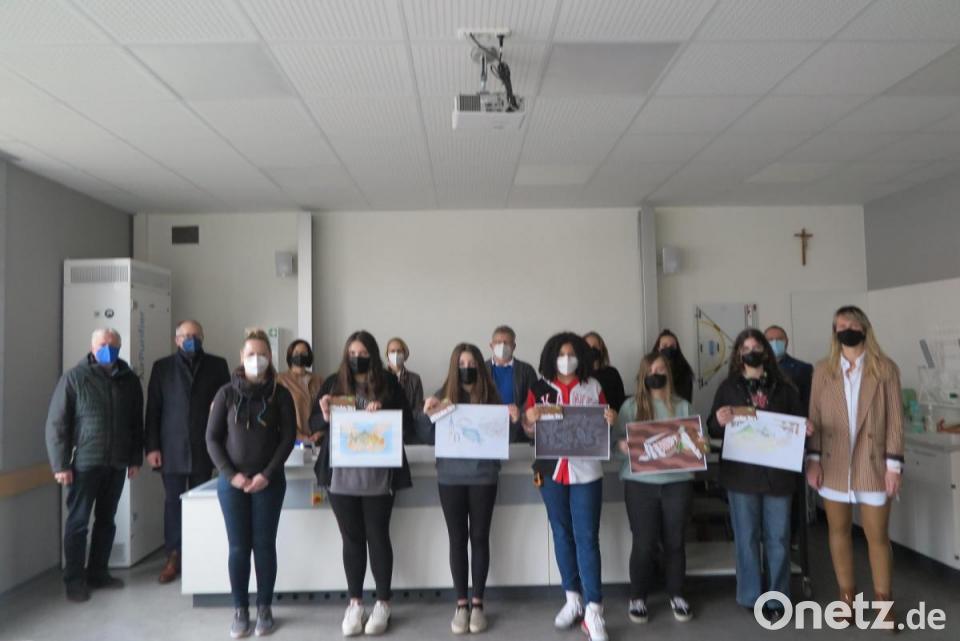 Die Realschülerinnen Liana Schunk (7d), Emily Enders (8e), Sophia Scholze (9f) und Kayla Laidley (10a) sowie Mittelschülerin Zoey Kassler aus der 7. Klasse stellten ihre Entwürfe vor und erklärten sie. Die Ehrengäste waren sehr beeindruckt und lobten die künstlerische Kreativität und die beeindruckende Umsetzung ihrer Ideen. Sehr gelungen ist auch die Gestaltung der Innenseite der Banderole.