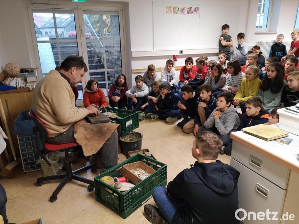 Die sechsten Klassen der Realschule wollten es genau wissen: "Welche Handwerkstechniken beherrschten die Menschen in der Jungsteinzeit?" "Was genau macht ein Archäologe?" und "Wie machten die Steinzeitmenschen Feuer?" All diese Fragen beantwortete ihnen Archäologe Lothar Breinl bei einem Projekttag. Die spannende Reise in die Steinzeit begann mit einem theoretischen Teil. Der Referent erklärte, wie archäologische Ausgrabungen ablaufen. So zeigte er Bilder einer Grabungsstätte bei Straubing, in der eine Wohnsiedlung gefunden wurde. Die Menschen lebten damals in sogenannten Langhäusern, die oft über 50 Meter lang waren. Aufnahmen von Skeletten, bei denen Schmuckstücke und andere Grabbeigaben wie Werkzeuge oder Waffen entdeckt wurden, verdeutlichten, wie Menschen damals ihre Toten begraben haben.