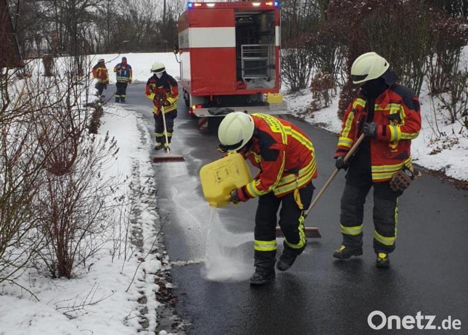 Weitere Meldungen zu mit Öl verunreinigten Straßen gingen am Dienstagnachmittag ein - die ILS löste wieder Alarm für die Einsatzkräfte der Kemnather Feuerwehr aus: Gegen 14.30 Uhr rückten erneut mehr als 20 Feuerwehrleute zum Ölwehreinsatz im Stadtgebiet aus. Auf seiner weiteren Tour hatte der Radlader schließlich auch hier nicht nur Streusalz aufgebracht, sondern auch Öl auf den nassen Straßen verloren.