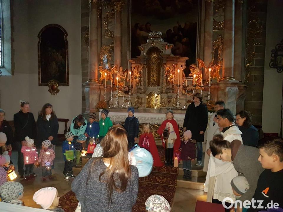 Zu einer Martinsfeier hatten die Eltern-Kind-Gruppen unter Leitung von Renate Pressler und Simone Beck in die Stadtpfarrkirche eingeladen. Nach einer Begrüßung durch Gemeindereferent Jochen Gößl und der liturgischen Eröffnung durch Pater Joseph spielten zwei Kinder die Martinsgeschichte vor. Anschließend zogen die Mädchen und Buben singend mit ihren beleuchteten Laternen durch die abgedunkelte Kirche, bevor sie sich zum gemeinsamen Vaterunser vor dem Hochaltar versammelten. Nachdem Pater Joseph ihnen allen den Segen Gottes zugesprochen hatte, zogen sie, hinter dem heiligen Martin und dem Bettler, zum Pfarrheim. Dort gab es heiße Wienerle, Semmeln, Brezen, Tee, Apfelschorle und Wasser. Es war auch eine Spiel- und Malecke eingerichtet.