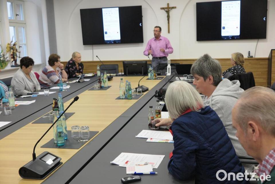 Im Projekt „Digitales Dorf“ bieten die Behindertenbeauftragten des Landkreises Tirschenreuth älteren Bürgern und Menschen mit Behinderungen die Möglichkeit an, die neuen digitalen Medien kennen- und anwenden zu lernen. Mit Einsteigekursen zu Smartphone und PC soll das Bildungsangebot erweitert werden. Dazu werden im Landkreis in mehreren Gemeinden Kurse zum Umgang mit Smartphone und Co angeboten. In Kemnath startete diese Aktion mit einem Handykurs. Der Sitzungssaal des Rathauses war barrierefrei erreichbar. 16 Senioren nahmen am Kurs teil. Jeder hatte sein eigenes Handy, Smartphone oder Tablet mitgebracht. „Der Kurs ist ausgebucht“, freute sich Stefanie Baier, „es gab sogar eine Warteliste.“ Die Quartiersmanagerin von Leben plus in Kemnath kümmerte sich dort um die Organisation. Zu Beginn stellte sie den Referenten Jürgen Blumberg vor. Er leitet die Computerschule „Kinderleicht“ in Mitterteich. Der erfahrene Computerexperte vermittelte den Teilnehmern Grundkenntnisse im Umgang mit diesen Geräten und übte mit ihnen so lange, bis sie es verstanden hatten. Er kümmerte er sich um jeden Teilnehmer und erklärte geduldig alle Einzelheiten. Weil fast jeder ein anderes Gerät hatte, dauerte das ziemlich lange. So kam er nur dazu, die verschiedenen Symbole auf dem Display wie „WLan“, „Flugmodus“, „Lautstärke“, ,„Helligkeit“ und „Taschenlampe“ zu erklären. Das Hauptziel dieses ersten Kurses war: „Wie lege ich einen neuen Kontakt an?“ und „Wie übertrage ich ihn nach WhatsApp?“ Diese Kursreihe wird mit einem weiteren Handy- und einem PC-Kurs fortgesetzt.