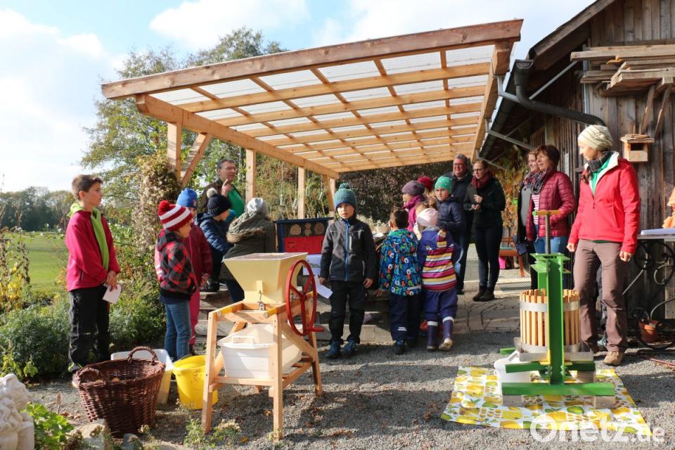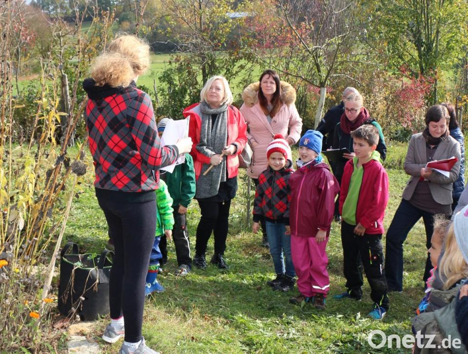 So anschaulich kann man den Kreislauf der Natur den Kindern begreifbar machen. Denn die Abfälle und Reste wurden gleich auf den Kompost gebracht oder für die Vögel ausgestreut. Das Laub der Bäume wurde für die stacheligen Mitbewohner rund um das Igelhaus in der Wildobsthecke aufgehäuft. Wie immer, gab es nach der getanen Arbeit eine Brotzeit, und die zuvor gefüllten Bratäpfel schmeckten besonders lecker. Dass die Brotzeit wichtig ist, das erfuhren die Jurymitglieder bereits beim Rundgang durch den Garten, denn die Kinder betonten das immer wieder: „Und nach der Aktion gab es eine gesunde Brotzeit!“