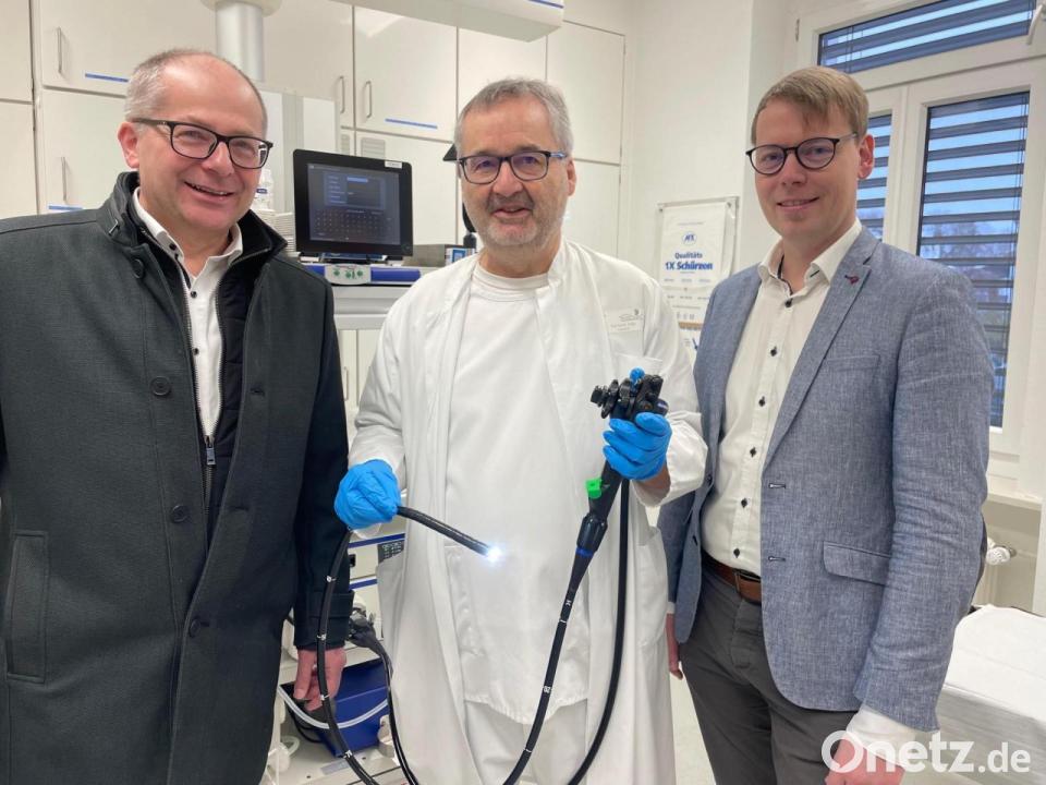 Das Krankenhaus Kemnath, bekannt für seine endoprothetischen Behandlungen, hat ein neues Koloskop erhalten. Die Krankenhausstiftung Kemnath übergab das Gerät, das einen Wert von rund 45.000 Euro hat, an die Abteilung Innere Medizin. Das teilen die Kliniken Nordoberpfalz in einer Pressemeldung mit. Chefarzt Dr. Gerhard Jilge, der die Abteilung leitet, betont demnach die Bedeutung des neuen Koloskops für die exakte Diagnostik und Bildgebung. Das Gerät wird zur Untersuchung des Dickdarms und des Rektums eingesetzt und ist mit einer Minikamera, einer Lichtquelle und Arbeitskanälen ausgestattet. Es ermöglicht die Beurteilung von Schleimhautveränderungen, die Entnahme von Gewebeproben und die Entfernung von Polypen.