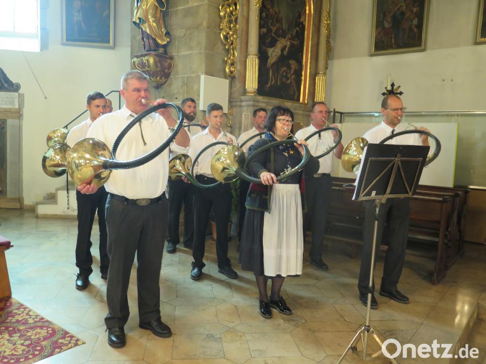 Den Gottesdienst gestalteten die Kaibitzer Schlossbläser musikalisch. Unter Leitung von Hornmeister Ely Eibisch spielten Günther Veigl, Daniel Eibisch, Liane Preininger, Thorsten Zickler, Johannes Busch, Wolfgang Veigl, Benjamin Eibisch und Christoph Ferber Choräle aus der Messe von Reinhold Stief, das "Gebet der Jäger", "Komm zum großen Abendmahl" und "Glocken". Während der Kommunionausteilung intonierte Eibisch ein Solostück. Bei "Heilig" aus der Schubertmesse, "Nun danket all und bringet Ehr" und dem Schlusslied "Großer Gott, wir loben dich" konnten alle Gottesdienstbesucher mitsingen. Zum Auszug erklang der "Fürstenruf". Bei der offiziellen Markteröffnung auf dem Stadtplatz durch die Schirmherren Wolfgang Lippert und Werner Nickl spielten die Schlossbläser "Auf auf, zum fröhlichen Jagen", die "Anblasfanfare", "Gruß von Lavant" und den "Landjägermeister-Konrad-Marsch".