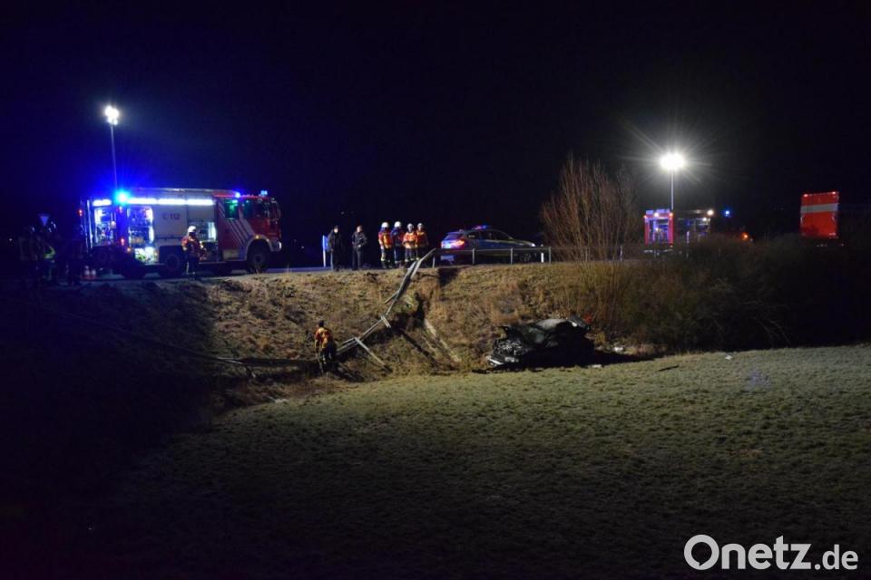 Auch die dortigen Schutzleitplanken konnten das Fahrzeug nicht stoppen. Durch die Wucht, welche das Fahrzeug zu diesem Zeitpunkt offenbar noch hatte, wurde ein Großteil der Schutzplankenanlage mitgerissen. Im weiteren Verlauf drehte oder überschlug sich das Fahrzeug offensichtlich und kam auf einer landwirtschaftlichen Fläche neben der Böschung, mit ersichtlich enormen Verformungsschäden, zum Stillstand.