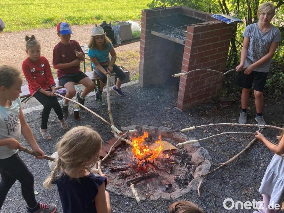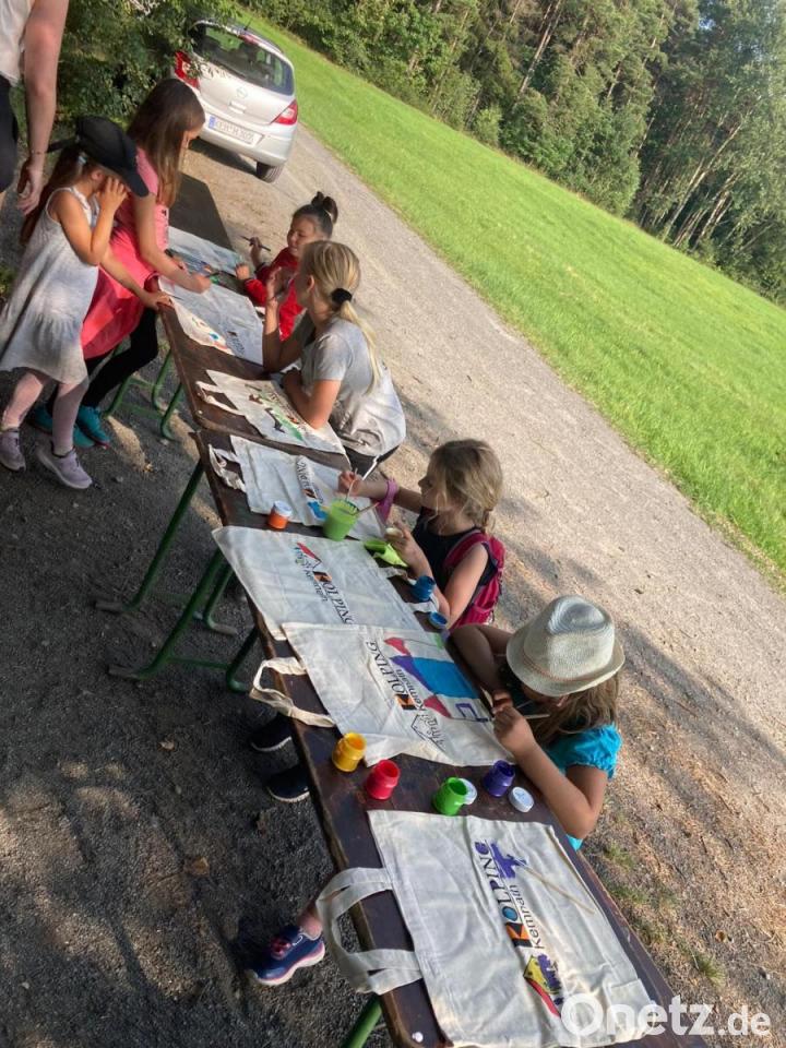 Die Kinder mussten sich nach verschiedenen Merkmalen sortieren, zum Beispiel nach der Körpergröße. Eine weitere Aufgabe war das Sortieren nach Schuhgröße. Es folgte ein besonderes Versteck- und Ratespiel. Dabei versteckte sich eine Gruppe der Kinder hinter den Bäumen, der andere Teil musste an deren Händen erkennen, wer hinter dem Baum steht. Zum Schluss wartete ein Rollenspiel auf die Teilnehmer. Am Ziel der Schnitzeljagd, der Kolpinghütte, hatten die Fabelwesen einen kleinen Schatz für die Kinder hinterlassen. Nach einer kleinen Pause bemalten die Kinder, zusammen mit Jungkolpingleiterin Mirjam Müller und Maria Heser, mit speziellen Farben einen Kolping-Stoffbeutel. Zur Stärkung gab es für alle Bratwürste und Steaks. Am Lagerfeuer wurde später noch ein Stockbrot gebacken.
