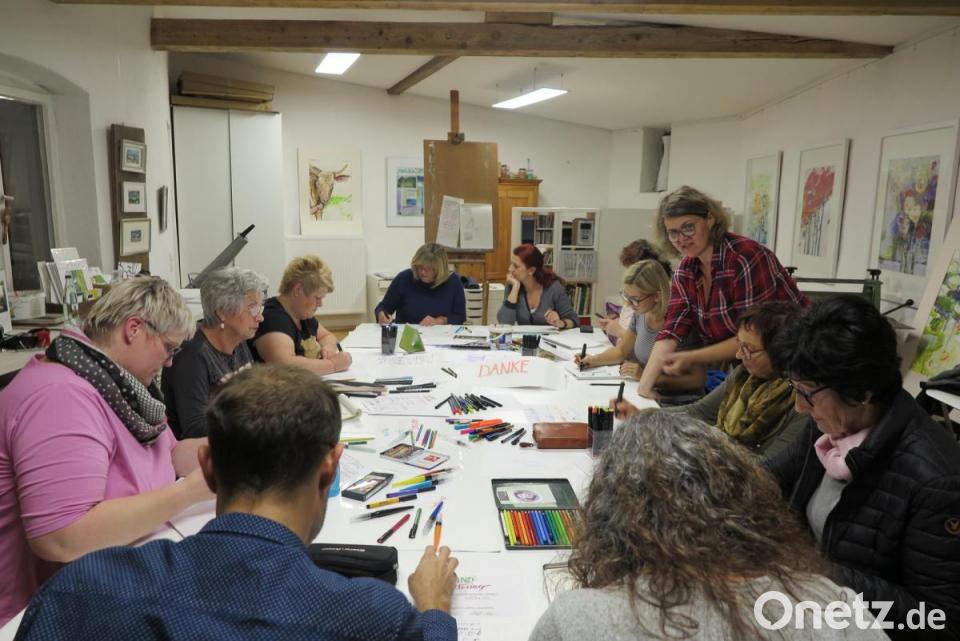 Handlettering ist der Überbegriff für den Bereich der gezeichneten und gemalten Buchstaben. Diese Kunst vermittelte Waltraud Müller elf Teilnehmern im Atelier an der Stadtmauer. Diese sollten aus der eigenen Handschrift dekorative Letterings entwickeln. Dabei konnten sie die Buchstaben und Schriftarten variieren. Je nach Bedarf setzten sie dabei Bleistift, Filzstift, Fineliner, Grafikmarker oder Brushpen ein. Sie experimentierten mit Schrift, kreierten kleine Botschaften und setzten ausgewählte Buchstaben oder Texte künstlerisch um. Waltraud Müller stand ihnen mit Rat und tat zur Seite.