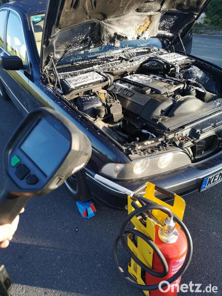 Mit einem tragbaren Kleinlöschgerät löschten die beiden Feuerwehrler den Kleinbrand im Motorraum. Verursacht wurde der Brand wohl durch einen technischen Defekt an der elektrischen Einrichtung des Fahrzeugs. Da der beginnende Fahrzeugbrand rasch bemerkt und auch schnell abgelöscht wurde, entstand an dem 5er BMW des Kemnathers nur geringer Sachschaden. Zur Aufnahme des Schadens rückte eine Streife der Kemnather Polizei an.