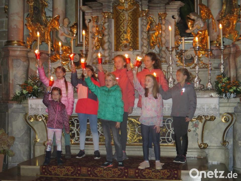 Vor diesem bewegenden Marienlied entzündete jedes Kind eine Kerze, stellte sich auf die Stufen des Hochaltars und begann zu singen. Während der Messe sangen die acht Mädchen im Alter zwischen 8 und 13 Jahren die Gottesloblieder "Atme in uns, Heiliger Geist", "Wir bringen das Brot", "Heilig, heilig lasst uns singen" und "Lamm Gottes, du nimmst hinweg die Sünden der Welt"., die auch im neuen Gotteslob abgedruckt sind.