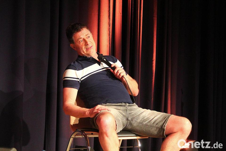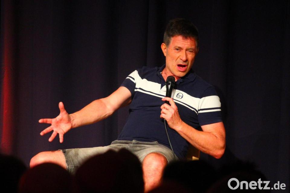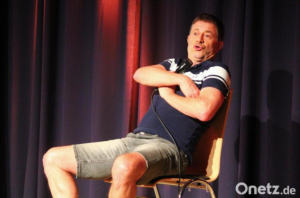 Er braucht gar nicht viel – nämlich nur einen Stuhl, eine Flasche Mineralwasser und ein Mikrofon. Und dann legt Rolf Miller los. Wobei loslegen vielleicht das falsche Wort ist, denn logische und semantisch richtige Sätze, die aus ihn heraussprudeln, sind die Ausnahme. Miller ist eher der Meister des abgebrochenen Satzes, garniert mit unzähligen „Dings“ und einer Mischung aus spitz-dreckigem Lachen. Wie man damit ein 90-minütiges Programm füllen kann und die Besucher begeistert, demonstrierte er am Sonntagabend im Kemnather Foyer der Mehrzweckhalle.
