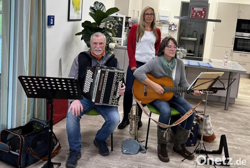 Sie unterhielten die anwesenden Bewohnerinnen und Bewohner mit Volksliedern passend zum Monat November. Dabei wurden die Senioren von den Musikanten geschickt bei den Refrains "mitgenommen", um bei den Liedern mitzusingen.