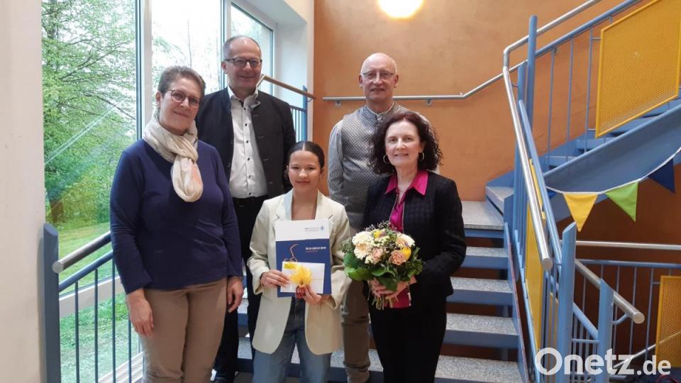 Diese Auszeichnung wird laut Mitteilung an Schüler von Musikschulen vergeben, die langjährig an einem Instrument oder der Stimme ausgebildet wurden, dazu Mitglieder von musikalischen Ensembles waren und unter anderem bei Wettbewerben und Leistungsprüfungen teilgenommen haben. Whitted habe diese Voraussetzung alle erfüllt und im Rahmen ihrer musikalischen Ausbildung damit auch erweiterte Kompetenzen erworben, „die für ihren weiteren beruflichen und persönlichen Lebensweg wertvoll sind“. Bürgermeister Roman Schäffler übergab zusammen mit der stellvertretenden Leiterin der Kreismusikschule, Klaudia Kormann, und Bernhard Müller als Vertreter des Fördervereins MUT mit einer Laudatio den Kompetenznachweis an Honie Whitted. Die Klavierlehrerin Margit Sollfrank bekam von ihrer ehemaligen Schülerin als Dank für die langjährige Unterstützung einen Blumenstrauß.