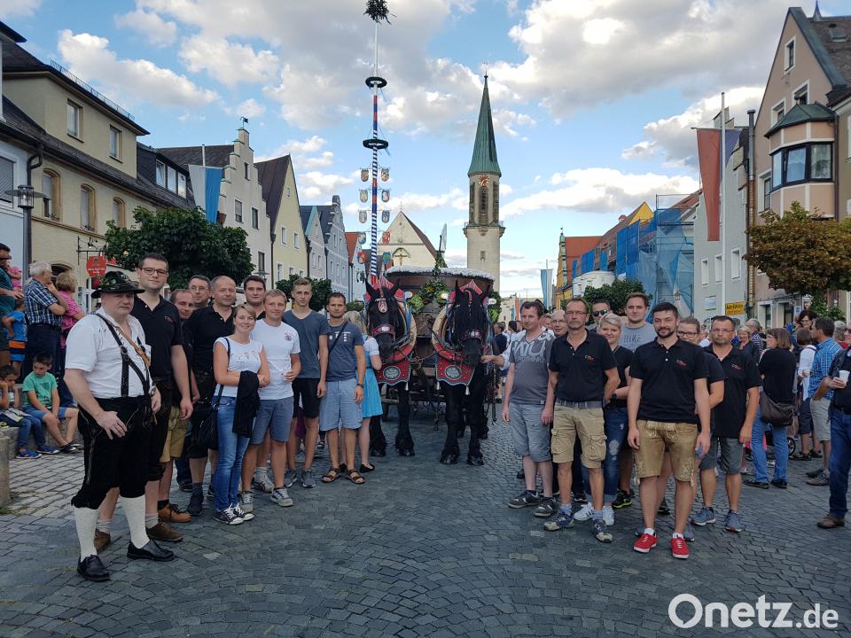Beim Feuerwehrhaus nahmen die Gäste den neuen Versorgungslastkraftwagen der Kemnather unter die Lupe. Auch die Beladung des Einsatzfahrzeuges, die vielen Pumpen und Gerätschaften für den Hochwaserschutz inspizierten sie genau. Auf Einladung von Bürgermeister Werner Nickl beteiligten sich auch einige der Floriansjünger beider Wehren am Festumzug zum Auftakt des Wiesenfestes. Vor dem Bierkutschengespann, welches die Pferde von Hermann Walter aus Lämmershof zogen, stellten sie sich zu einem Gruppenbild als Erinnerung auf.