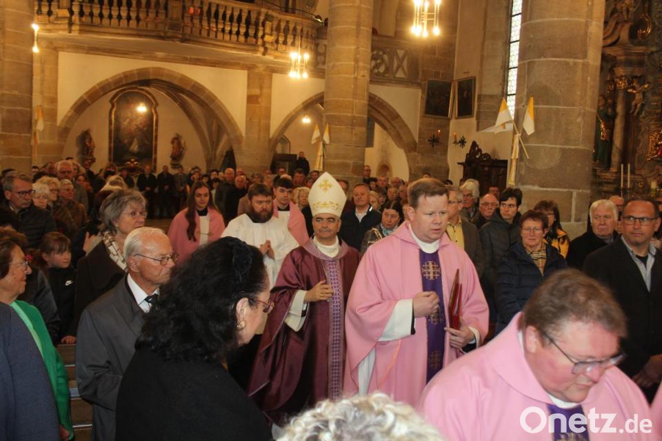Der Apostolische Nuntius Erzbischof Dr. Nikola Eterovic aus Berlin war am vergangenen Wochenende auf Einladung der Stadt Kemnath zu Gast in Kemnath: Der ranghöchste Vertreter des Papstes in der Bundesrepublik Deutschland ("Botschafter") besuchte am Samstag die Premierenvorstellung der Kemnather Passion in der Mehrzweckhalle, am Sonntag zelebrierte er einen Pontifikalgottesdienst in der Stadtpfarrkirche Mariä Himmelfahrt. Konzelebranten waren Stadtpfarrer Thomas Kraus, Prodekan Sven Grillmeier aus Kirchenlaibach sowie Prälat Dr. Karel Simandl, am Altar assistierten die beiden Diakone Martin Schraml und Harald Schraml. Für die musikalische Gestaltung des Gottesdienstes sorgten der Passionschor unter der Leitung von Anna-Maria Beck, Organist Walter Thurn und Trompeter René Bauer. Vertreten waren auch Fahnenabordnungen vieler Kemnather Vereine. Stadtpfarrer Kraus brachte in seiner Begrüßung die Freude darüber zum Ausdruck, dass der Nuntius nun schon zum wiederholten Male in Kemnath zu Gast sei. Nach dem Gottesdienst hatte die Stadt zum Mittagessen ins Foyer der Mehrzweckhalle eingeladen, wo die Gäste vom Team der KEMevent GmbH bewirtet wurden. Zwischendrin nahm sich der Nuntius auch die Zeit, um sich mit Mitwirkenden der Kemnather Passion zu unterhalten.