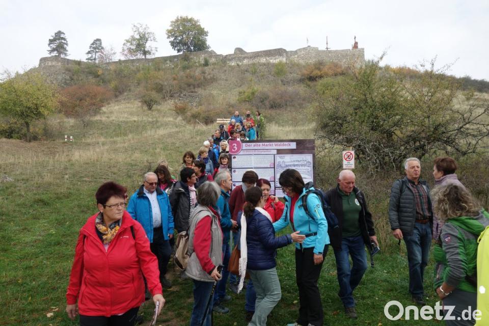 Ins Kemnather Land führte am Samstag bei Traumwetter die dritte Lesertour von „Oberpfalz-Medien“. Der Schlossberg-Bauleiter Franz Horn vom Heimat- und Kulturverein Waldeck erläuterte den 50 Teilnehmern eindrucksvoll die seit 1982 laufende Wiederinstandsetzung der über 900 Jahre alten Burgruine. Nächste Maßnahmen sind die Sanierung von vier Felsenkellern und eines vier Meter hohen Rundturms. Nach dem spektakulären Rundblick auf Rauhen Kulm, Armesberg, Ochsenkopf, Kühberg, Atzmannsberg und Kuschberg begaben sich die treuen Zeitungsleser unter Leitung von Meta Betke, versierte Hauptwanderführerin des Oberpfälzer Waldvereins, auf den knapp acht Kilometer langen Marterlweg. Er führt durch idyllische Hohlwege und dem in einem kleinen Wäldchen versteckten mystischen Schul- und Kirchsteig zurück nach Waldeck. Im Gasthof „Waldfrieden“ luden die Oberpfalz-Medien am Mittag ihre Gäste zu Schweinebraten oder Spätzle ein. Den Schlusspunkt bildete ein Abstecher in die prächtig restaurierte, barocke Pfarrkirche St. Nepomuk, deren Deckengemälde von einem Schüler der Gebrüder Asam stammen. Die begeisterten Wanderer freuen sich schon auf die Lesertour 2019.